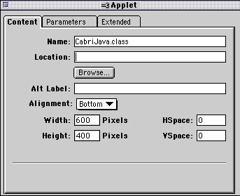 - CODEBASE: absent here, but is used to indicate if the code is in a different location (if not it is supposed to be in the same file as HTML page). For example if CabriJava.jar is as for this handbook on the same level as "handbook" folder then CODEBASE must indicate the folder to the top of file HTML, so CODEBASE = "../"